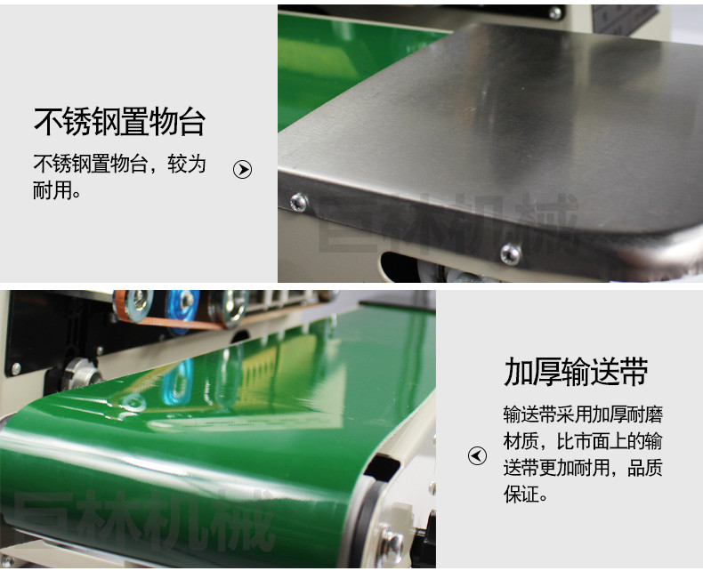 該系列封口機(jī)采用電子恒溫控制和無(wú)級(jí)調(diào)速傳動(dòng)系統(tǒng),具有自動(dòng)連續(xù)封口、印刷產(chǎn)品標(biāo)簽、一次完成之功能,并可臥、立落地使用。用于單層薄膜及各種復(fù)合薄膜的封口、制袋,廣泛應(yīng)用在食品、制藥、種子、化工、輕工等部門。